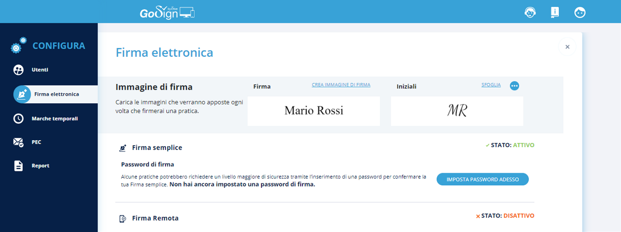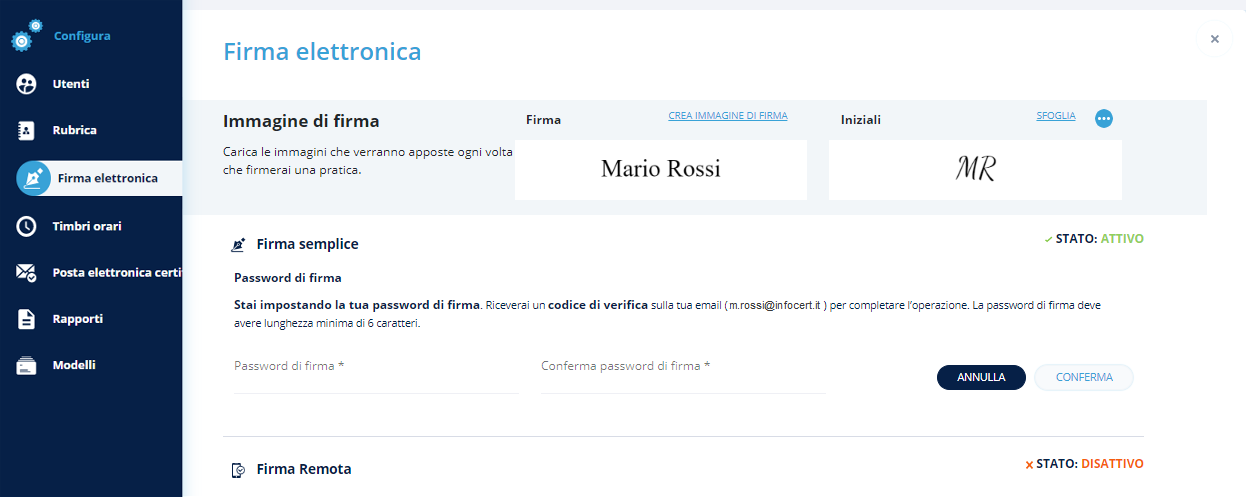 La firma semplice con password sarà quindi attiva e pronta per essere utilizzata.