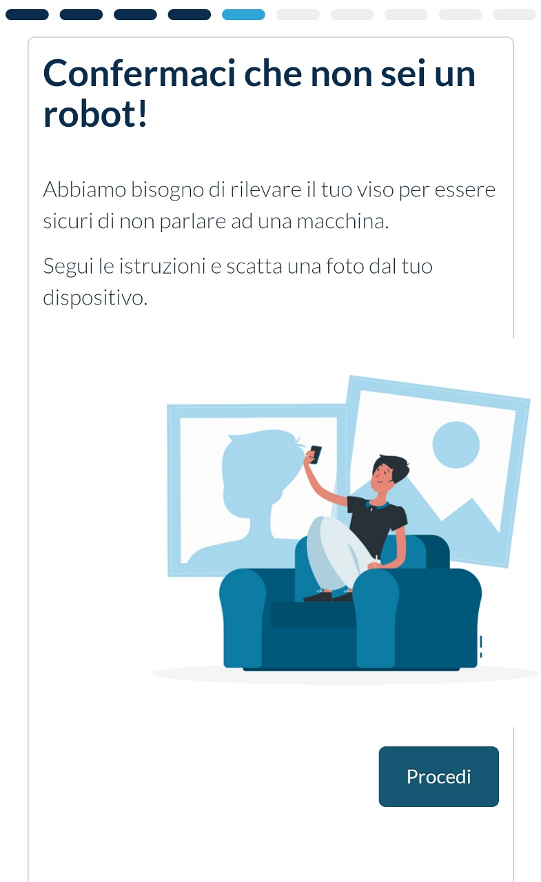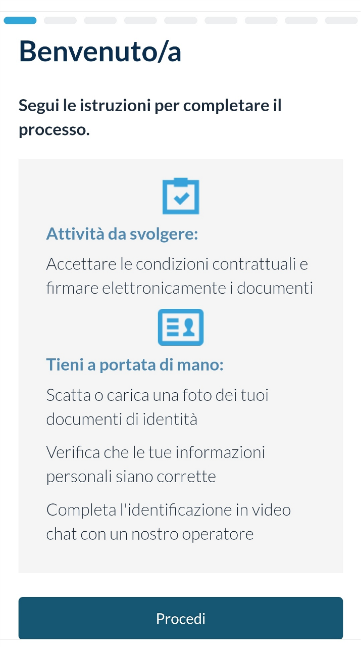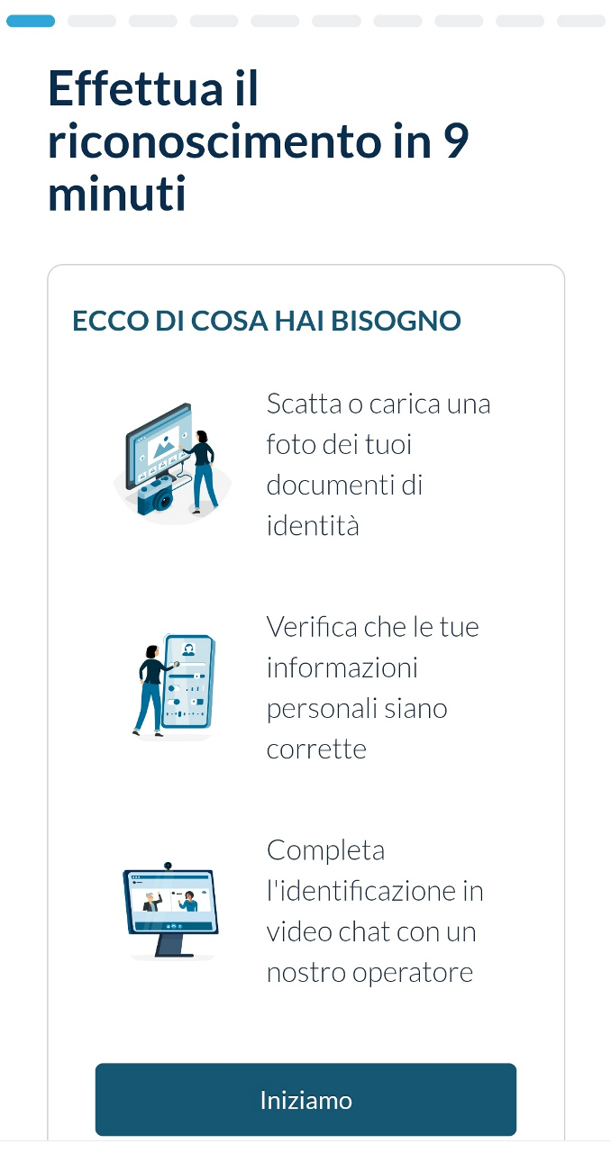L’utente accederà al processo di riconoscimento con SELF ID cliccando sul link che ha ricevuto via SMS, approdando nella pagina di benvenuto.