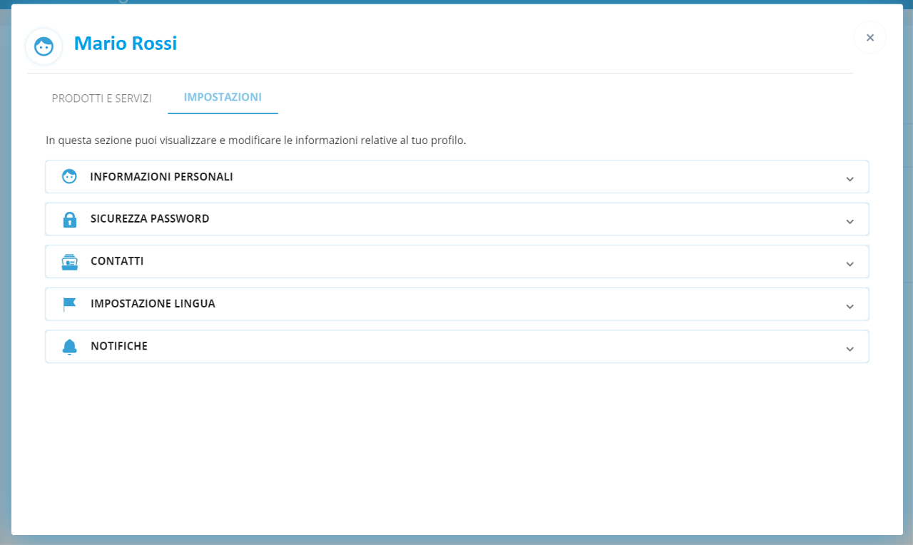 E' possibile modificare alcuni dati relativi al proprio account attraverso le "Impostazioni Utente".