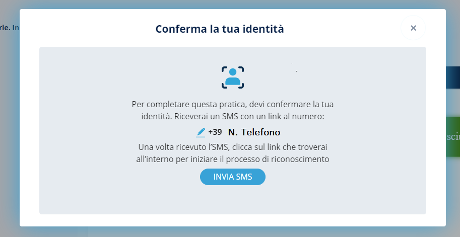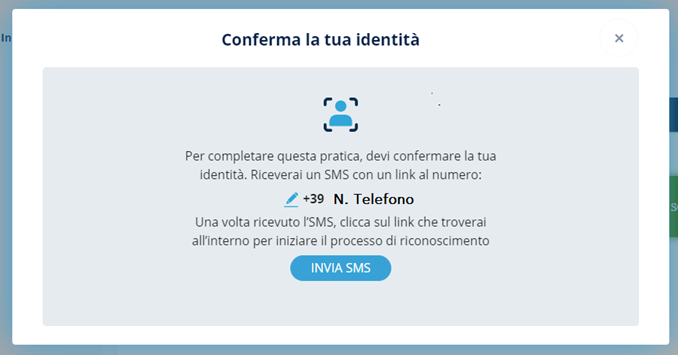 Successivamente si aprirà una pagina in cui viene chiesto al destinatario di confermare o inserire il numero di telefono al quale verrà inviato un link tramite SMS.