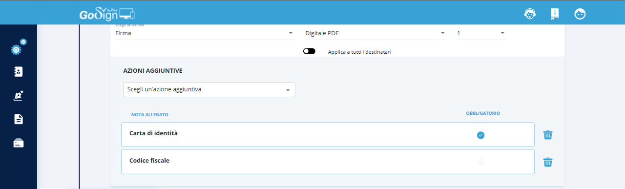 Nello stesso pannello, è possibile rimuovere una firma remota già presente cliccando sull'icona del cestino.