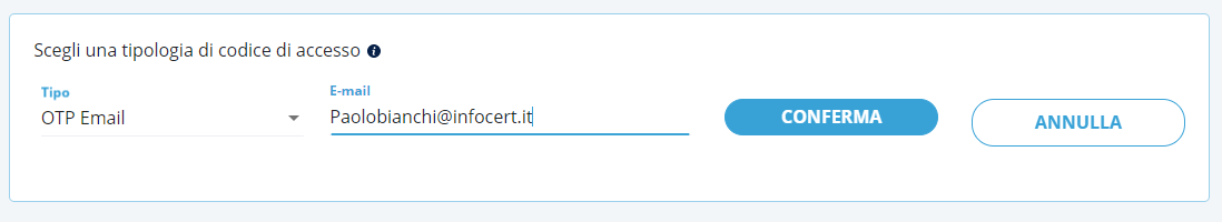 la Email o la username del firmatario che è relativa all’account che ha acquistato il servizio (le credenziali sono rilasciate all’utente da InfoCert al momento della richiesta del certificato, la si può trovare sulla copia della Richiesta di Registrazione consegnata in quell’occasione);