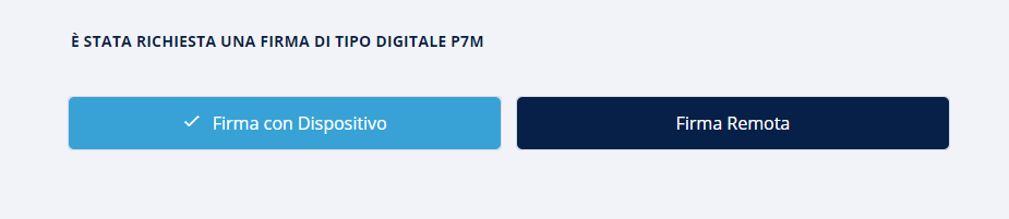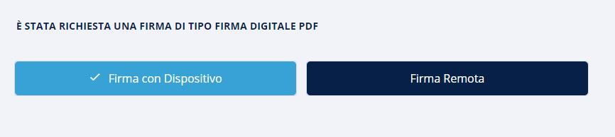 Una volta terminate le azioni, per entrambe le tecnologie scelte, il passo successivo è quello di specificare quale tipologia di firma dovrà essere apposta sulla pratica: si può scegliere tra la Firma con Dispositivo o Firma remota.