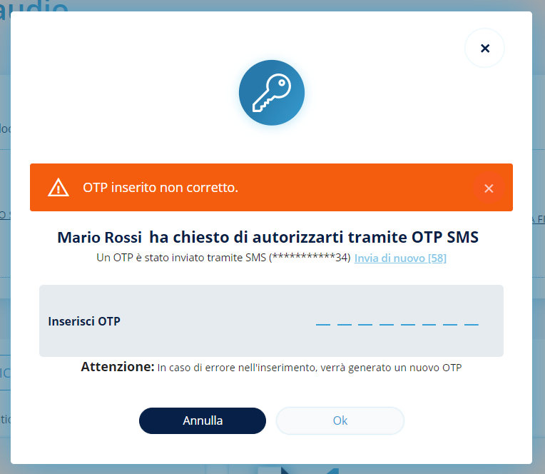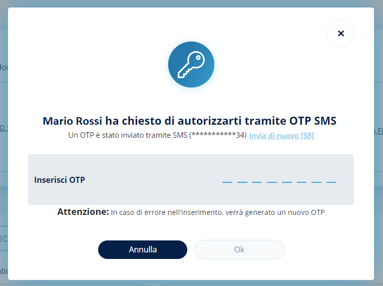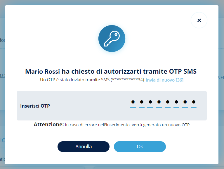 Per concludere, sarà necessario richiedere il codice OTP utilizzando le consuete modalità.