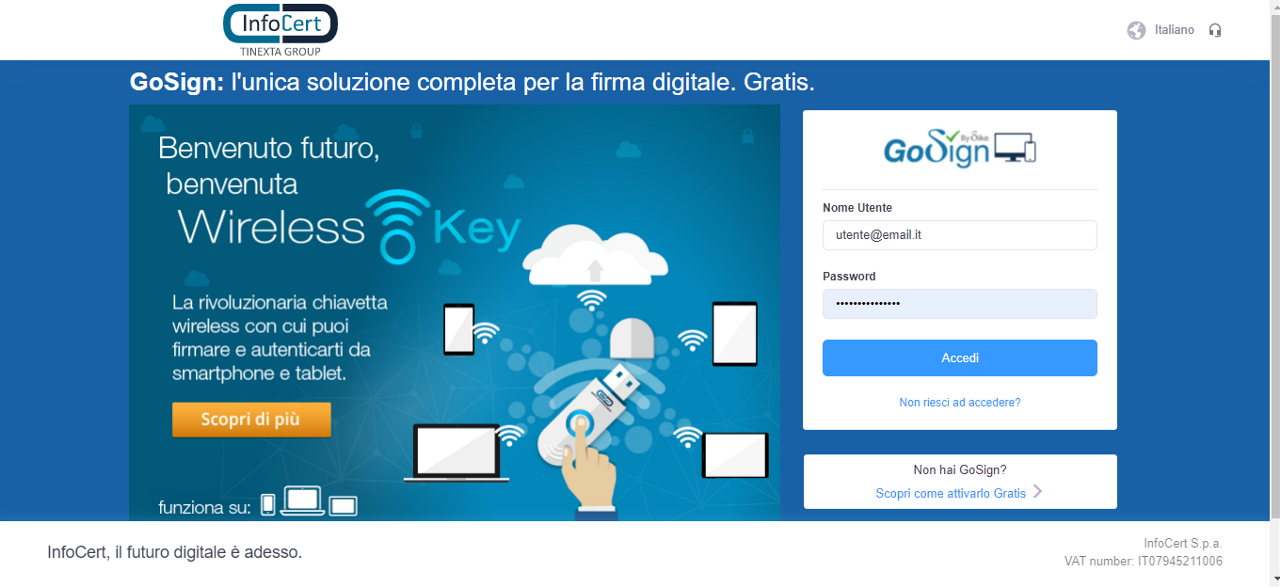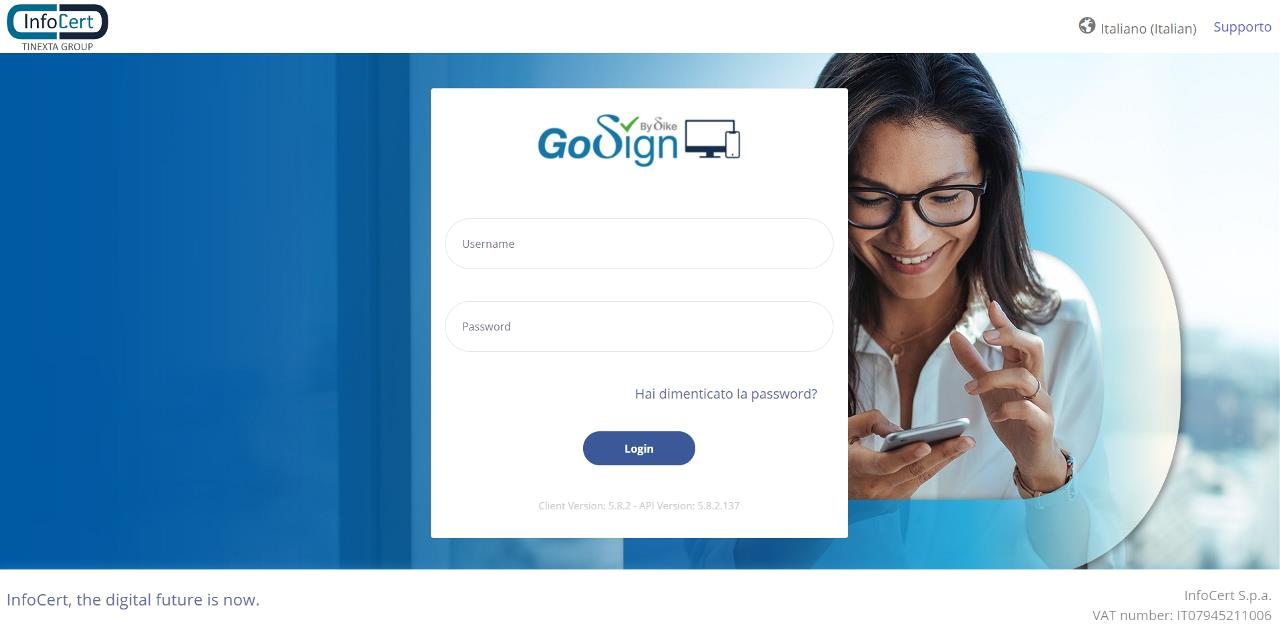 L'utente che ha un profilo Enterprise potrà accedere a GoSign Web tramite https://gosign.infocert.it/.