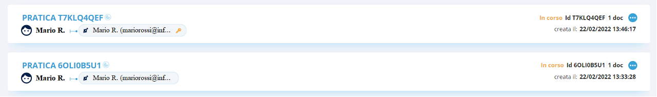 Con questa azione viene create una copia della pratica la pratica; una volta creata la copia si viene reindirizzati alla schermata di configurazione della pratica. La copia avrà lo stesso ID della pratica originaria, ma si differenzia da quella originaria poichè è presente un'icona di copia.