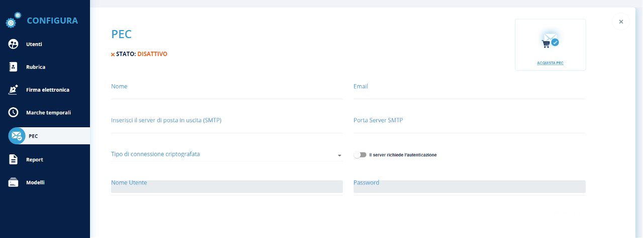 Per configurare la PEC bisogna inserire: