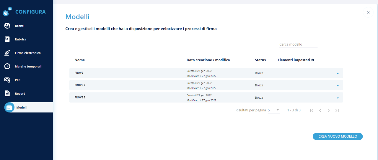 Cliccando sul pulsante Crea un nuovo modello, sarà possibile semplificare i processi di firma, impostando: