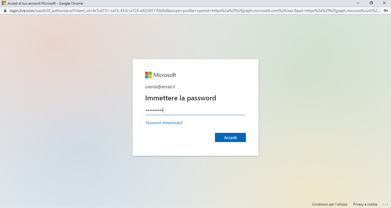 Una volta inserito il codice, il sistema chiederà l’autorizzazione alla trasmissione delle informazioni necessarie al gestore del sito.