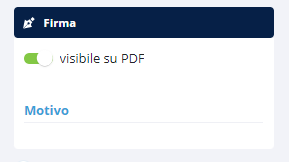 Firma: cliccando sull'anteprima del documento verrà posizionata un'icona sull'anteprima e sarà possibile impostare se si vuole o meno rendere visibile la firma sul documento.