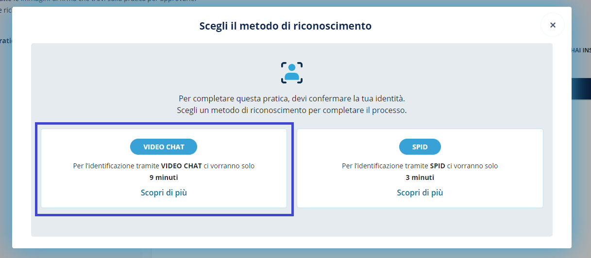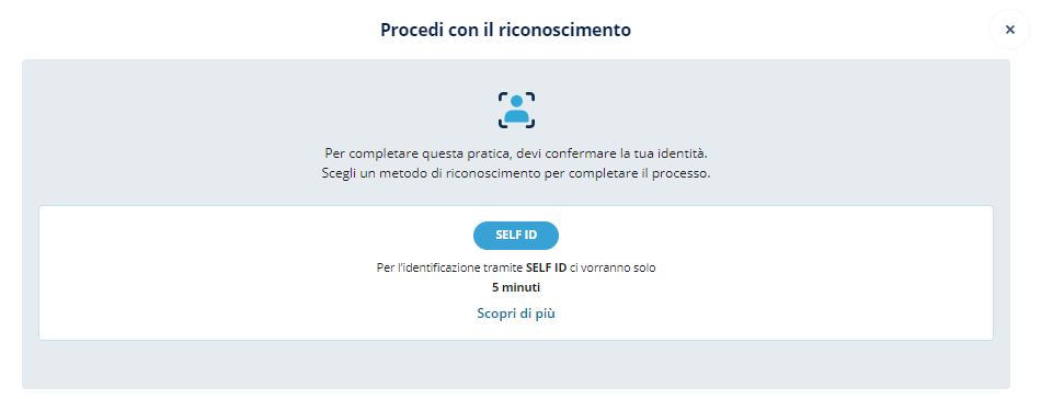 Nel caso di Firma Elettronica Avanzata, è possibile scegliere solo il riconoscimento tramite SELF ID.