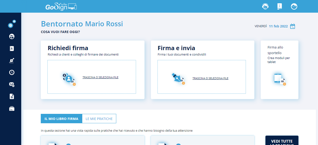 Nella Home Page di GoSign Web sono visibili tutte le funzionalità offerte.