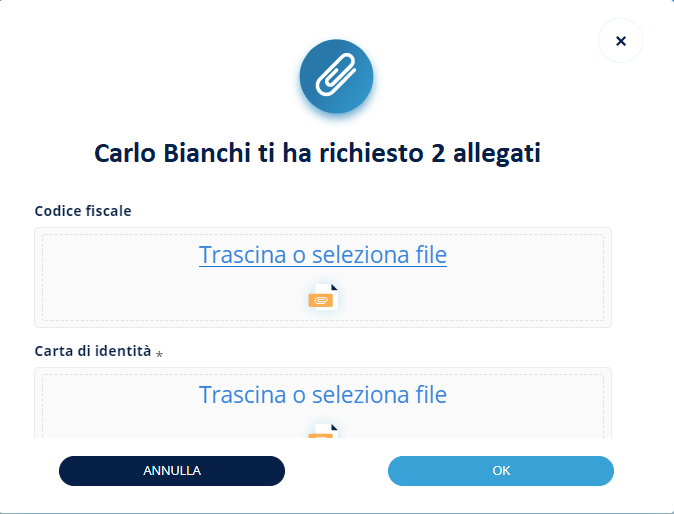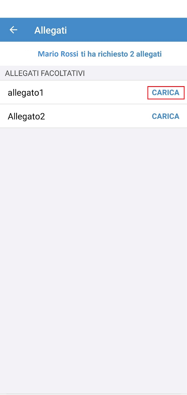 L’utente potrà procedere con il caricamento del documento.