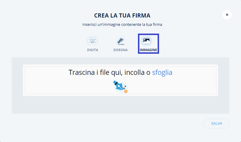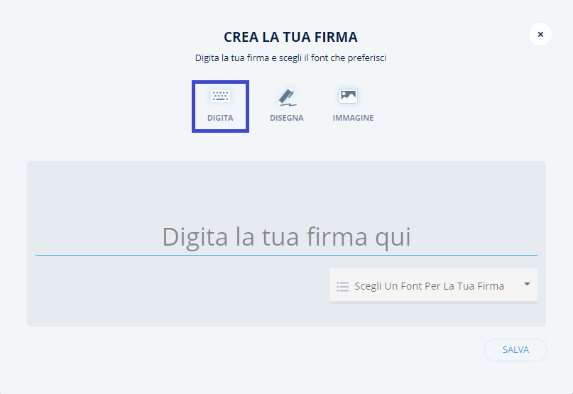 Una volta scelta la tipologia di firma desiderata, sarà necessario cliccare sul tasto Salva per confermare l’operazione.