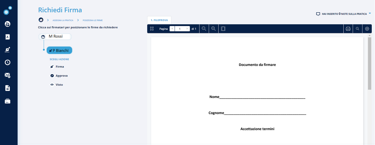 Le azioni disponibili in questo caso, sono tre: Firma, Approva e Visto.