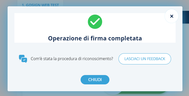 Cliccando su Chiudi si verrà reindirizzati fuori GoSign.