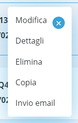Cliccando sull'icona dei tre puntini posta sul latro destro di ogni sezione pratica, si aprirà un menù a tendina che indicherà tutte le azioni che possono essere svolte su una pratica.
